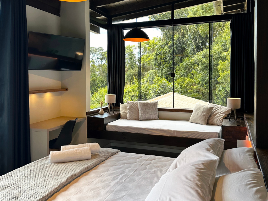 Nossas hospedagens foram cuidadosamente criadas e decoradas para você se sentir em casa e ter a melhor experiencia.